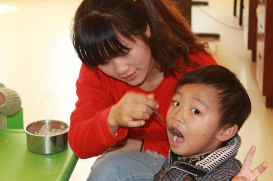 (資料圖:史玲瓏老師正在喂孩子午餐)